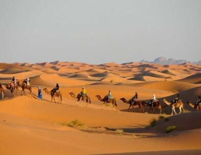 Finalmente, llegarás a las Dunas de Merzouga, el punto de entrada al Desierto del Sahara. Podrás ver las dunas de arena dorada, montar en camello y disfrutar de la espectacular puesta de sol sobre el desierto aquí. Pasarás la noche en un campamento tradicional en el desierto, donde podrás disfrutar de una deliciosa comida marroquí mientras te sumerges en la mágica atmósfera del Desierto del Sahara.